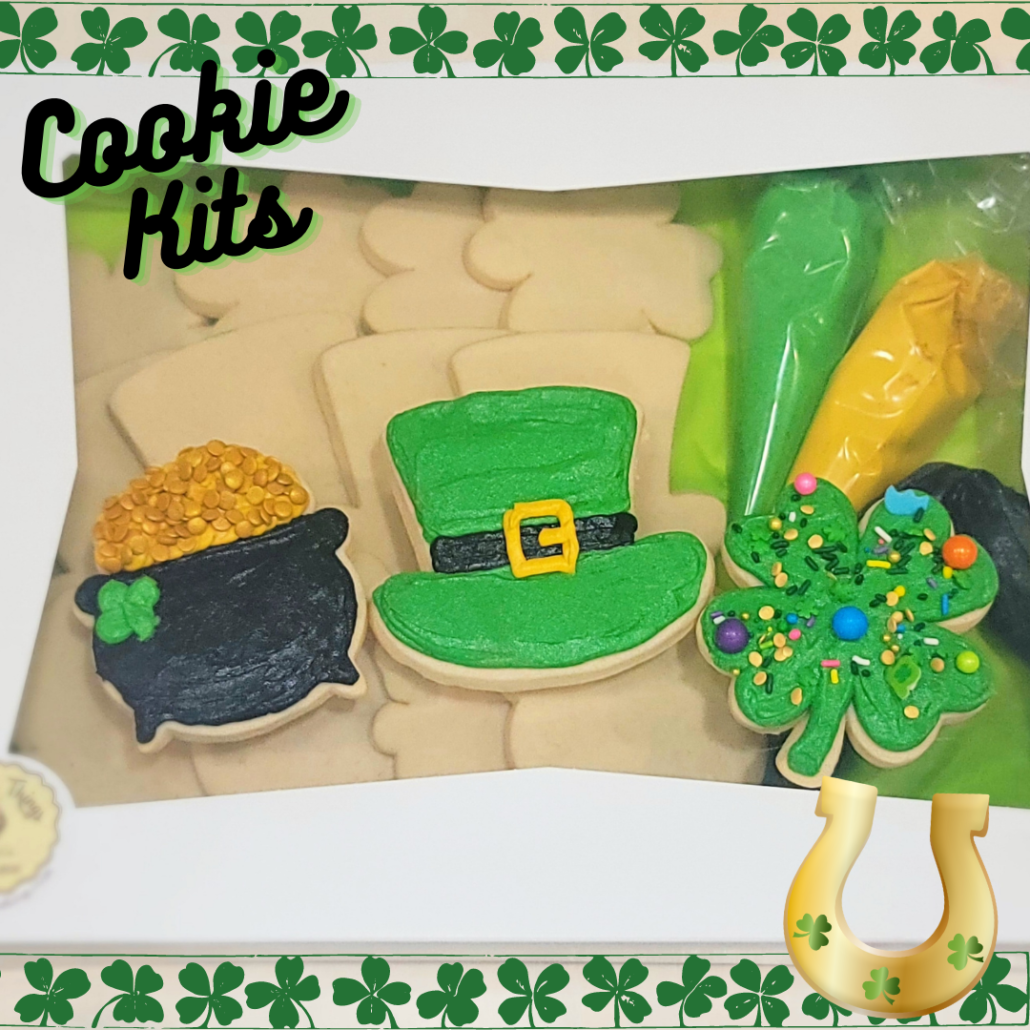 12 sugar cookies, 3 bags of buttercream icing, 2 packages of sprinkles.